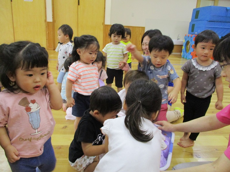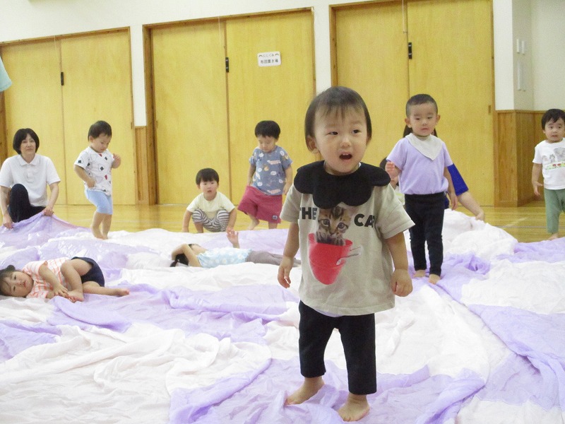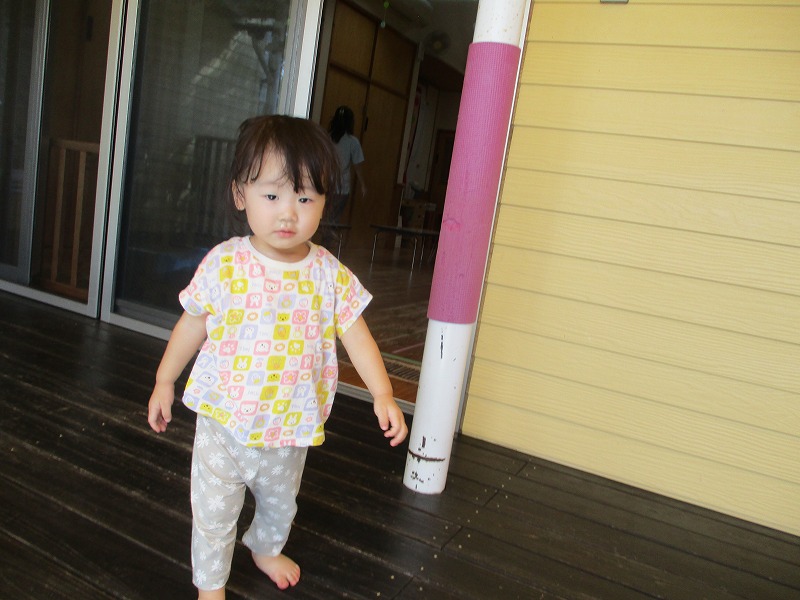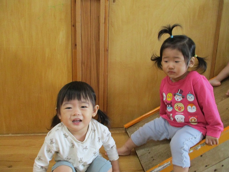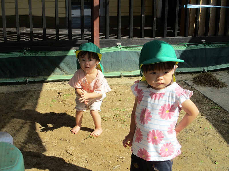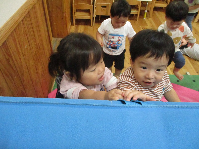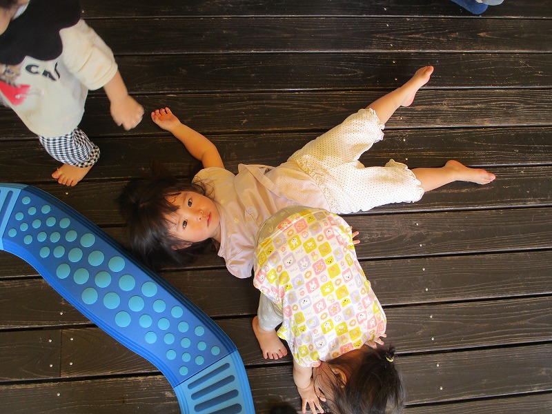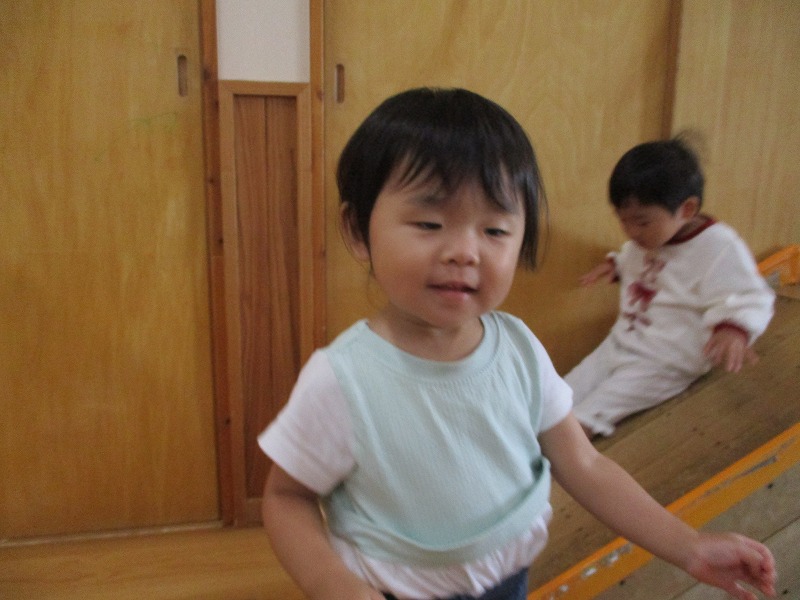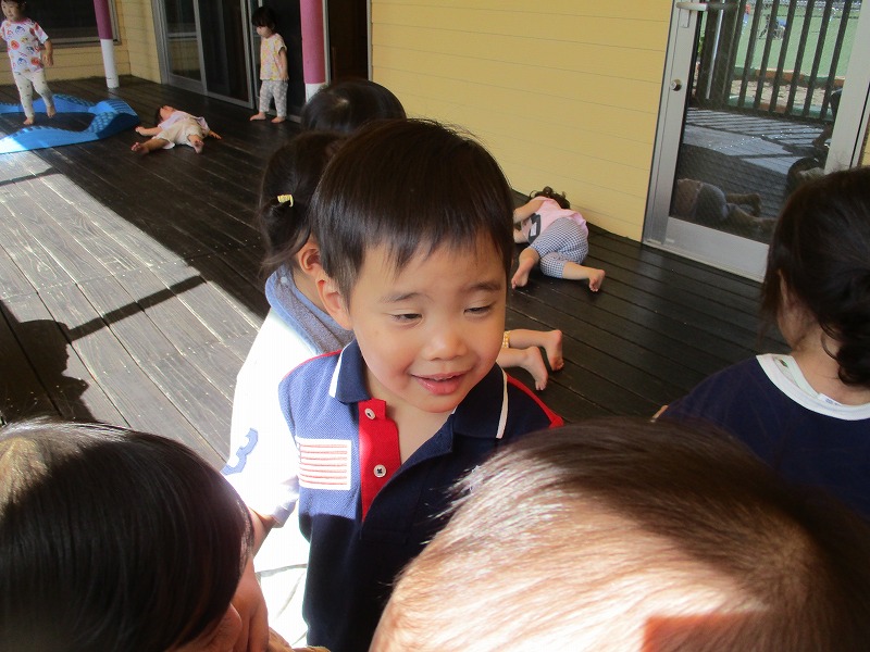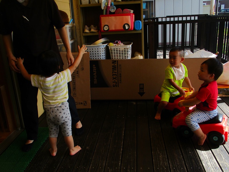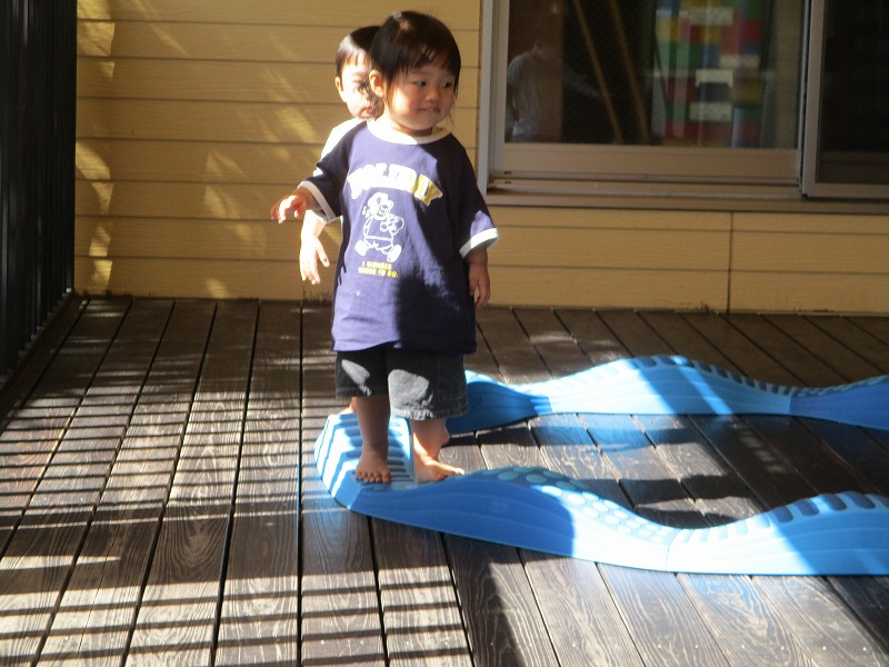 テラスの床板が太陽の日差しで温められ、子どもたちが歩くたびに「アッチアッチ」と言い保育教諭とやりとりを楽しみながら過ごしました。☀️☀️