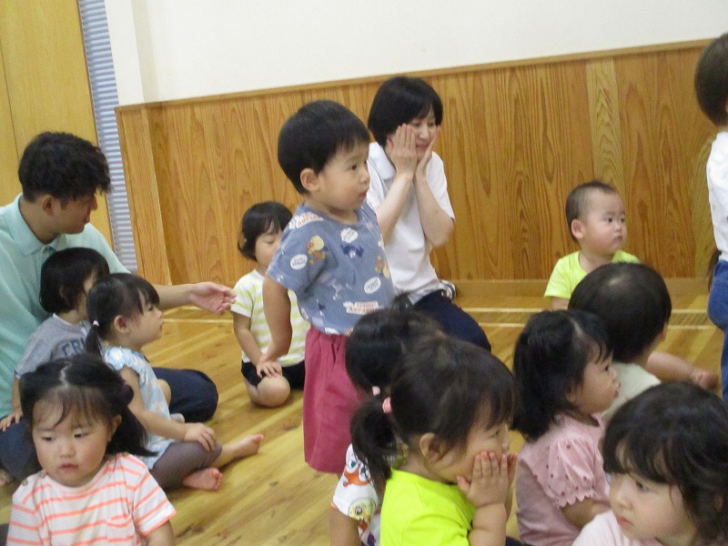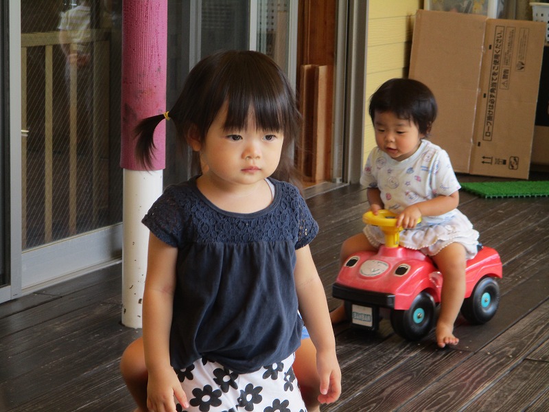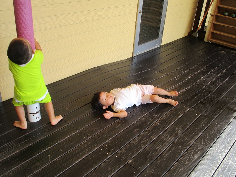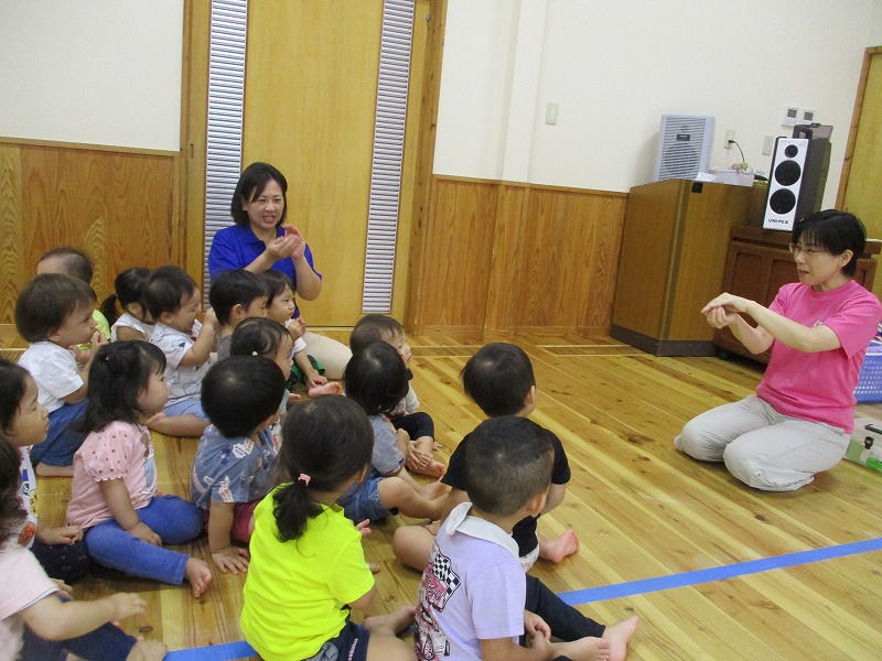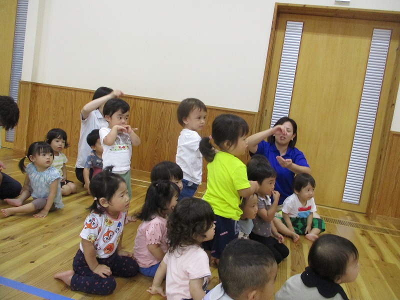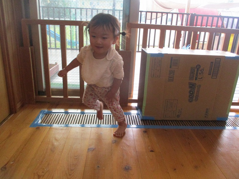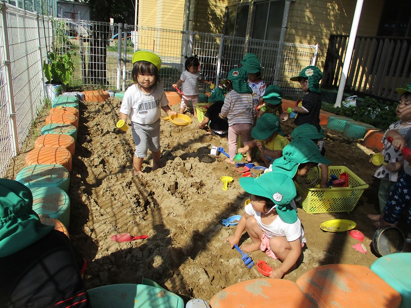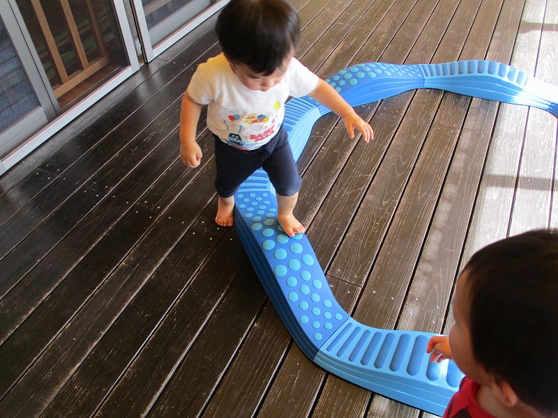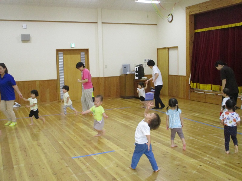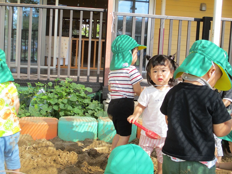 テラスの床板が太陽の日差しで温められ、子どもたちが歩くたびに「アッチアッチ」と言い保育教諭とやりとりを楽しみながら過ごしました。☀️☀️