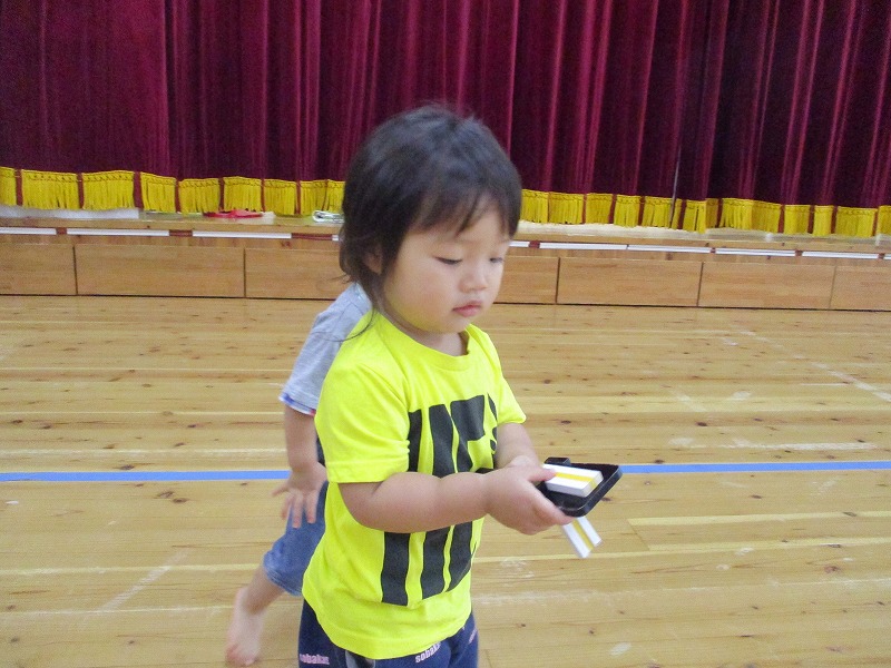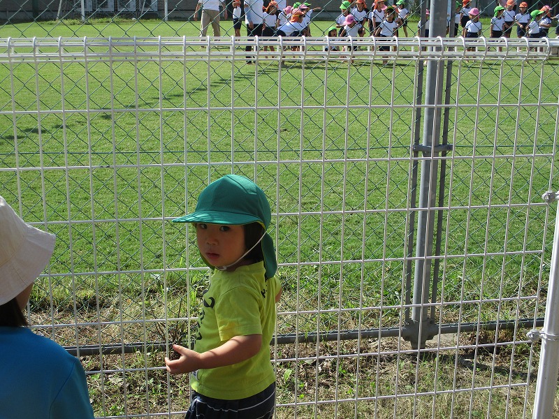 グラウンドでは、幼児の総練習があり、遊びながら見たり、踊ったりと楽しんでいました。