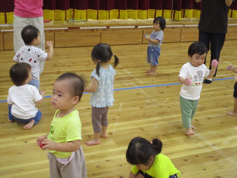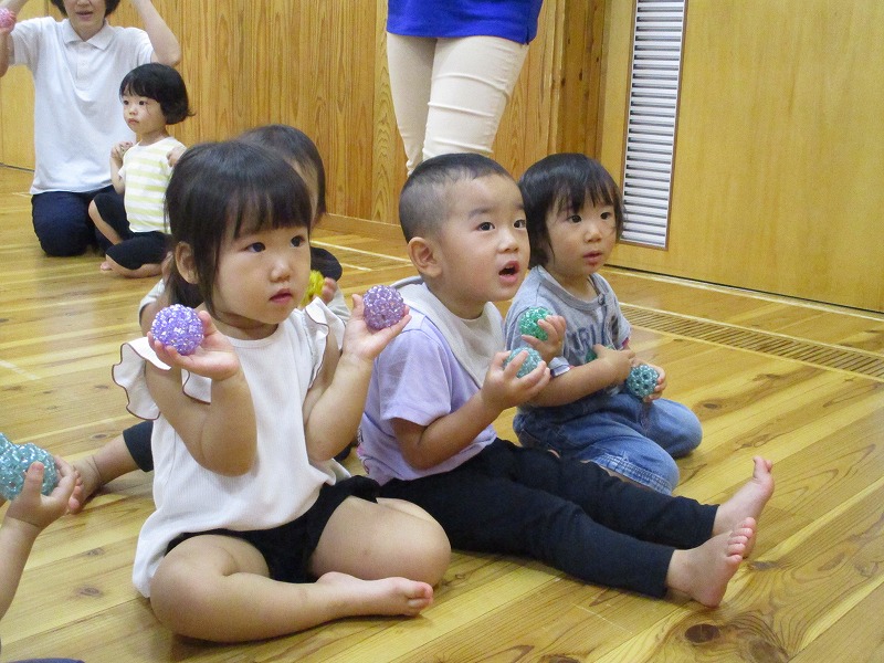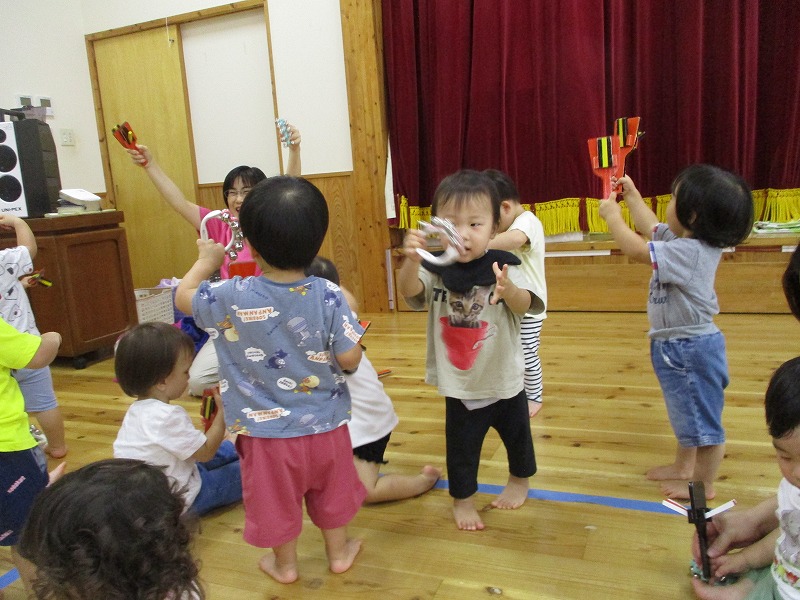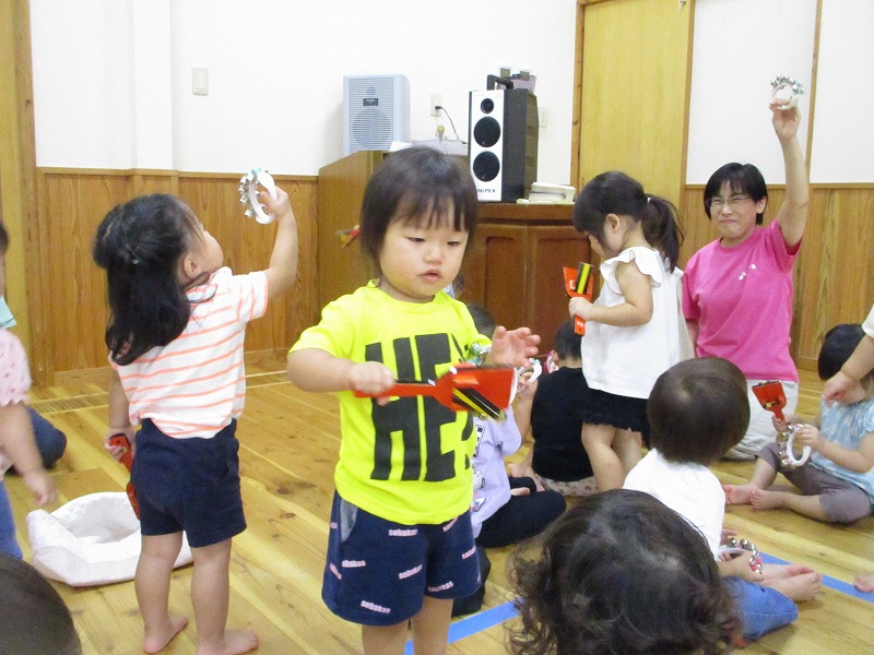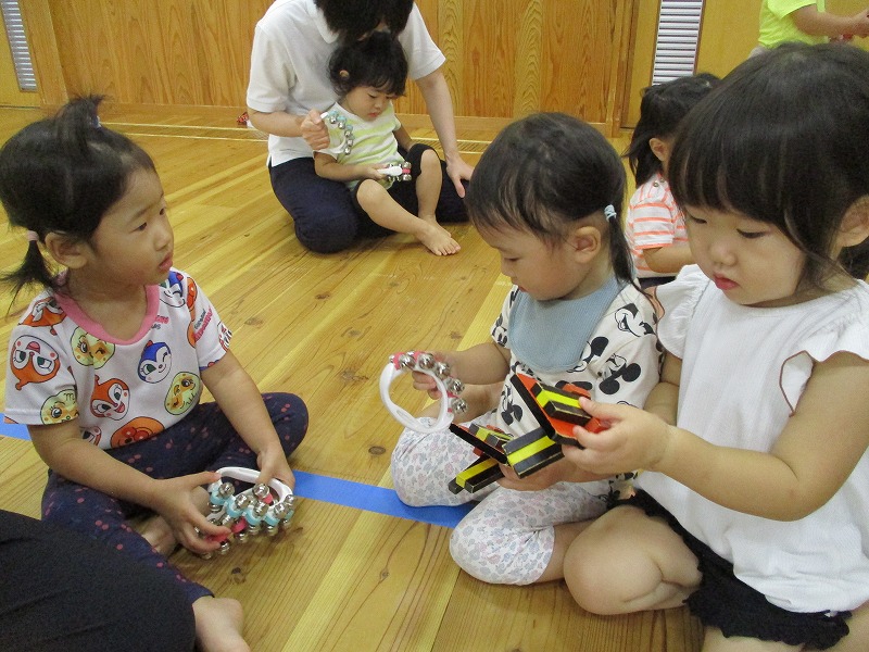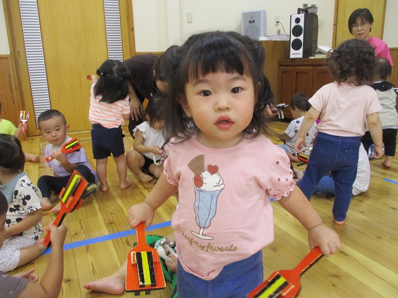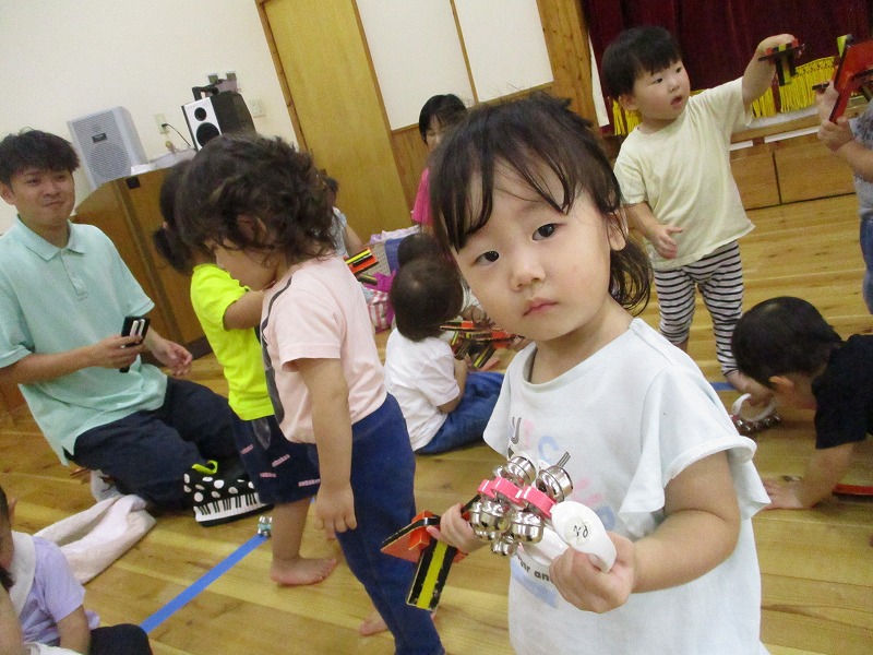 キララや鳴子、鈴など様々な楽器に触れたり、音楽を聴きながら動いたりと楽しむことができました!