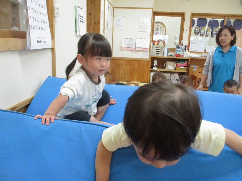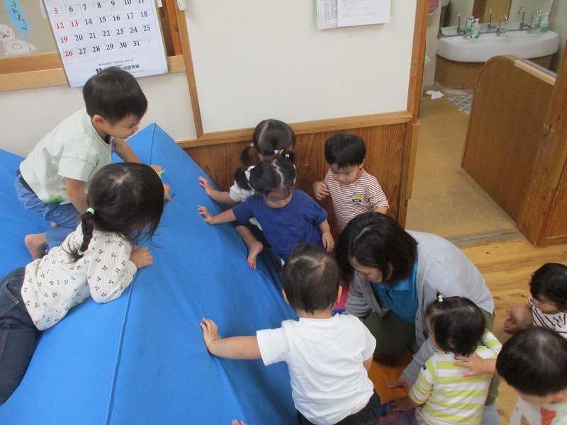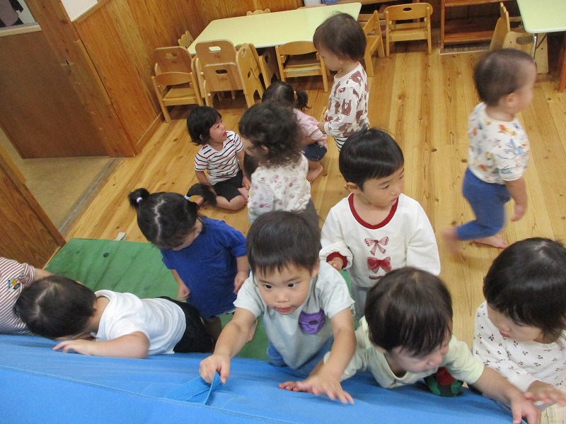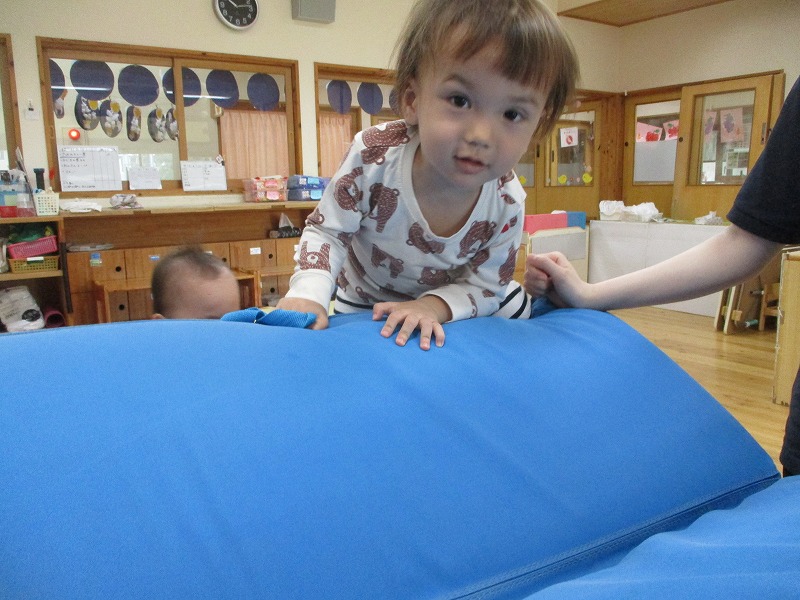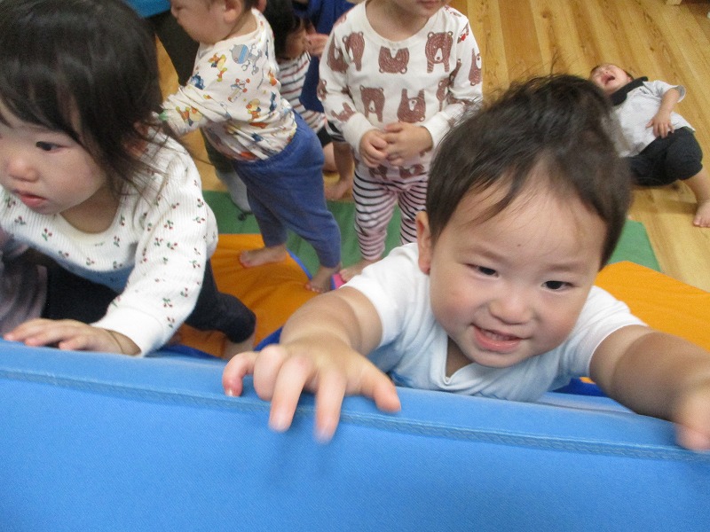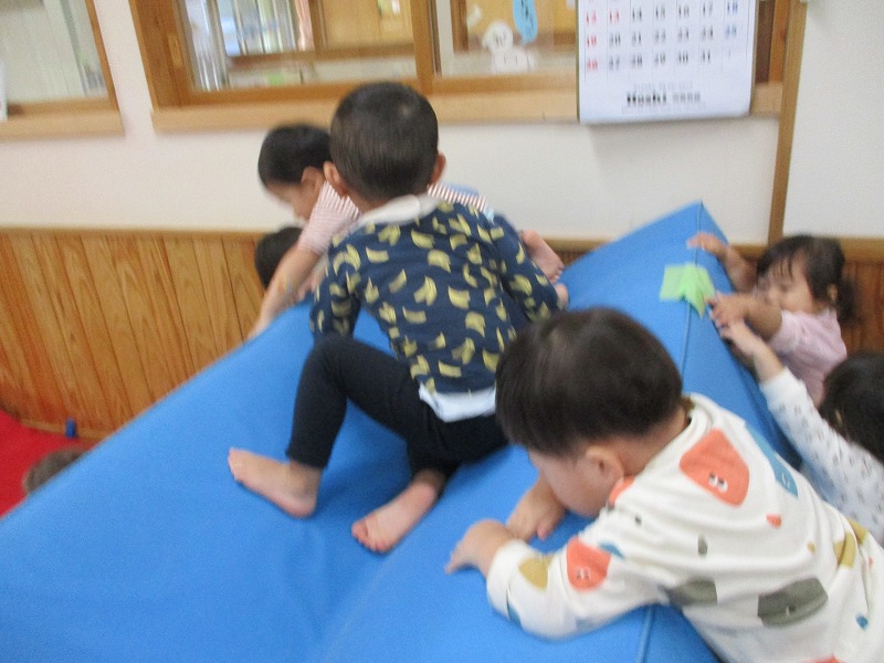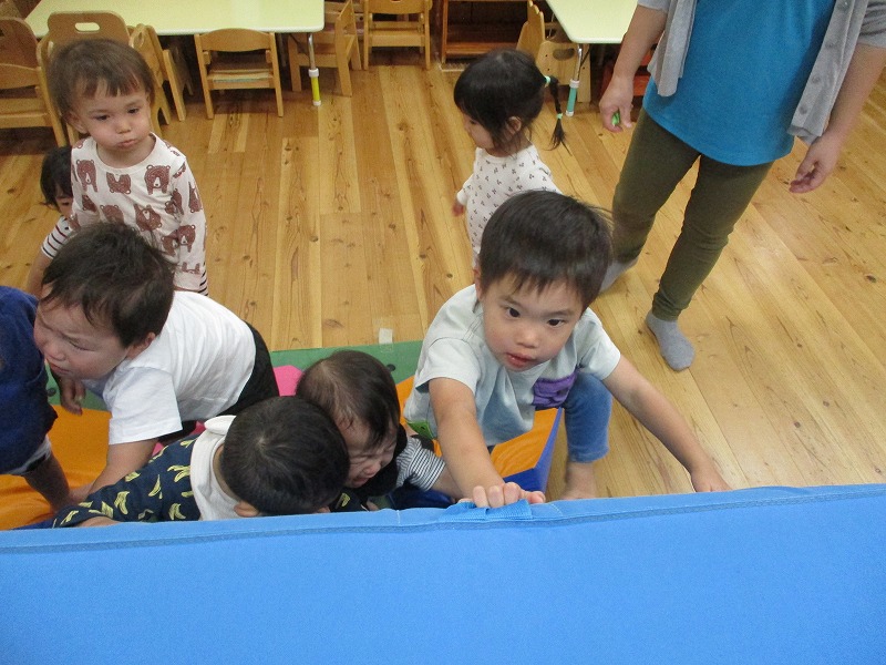 マット上りに果敢に挑戦し自分で上れるようになる子どもも増えてきました!!
