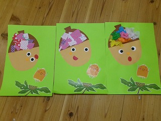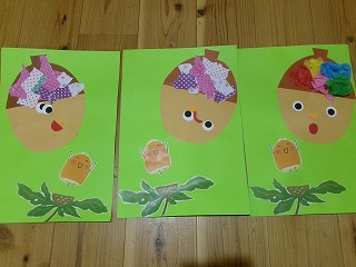 顔のパーツを付けて、かわいいどんぐりころちゃんが完成しました。