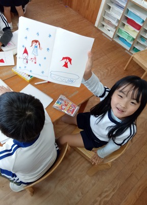 さて、題名にもありますように、「絵本を作りたい!」という子どもたちからの声があり、絵本作りをしました♪自分で考えて作る世界に一つだけの本です♡