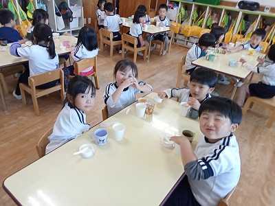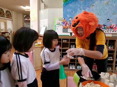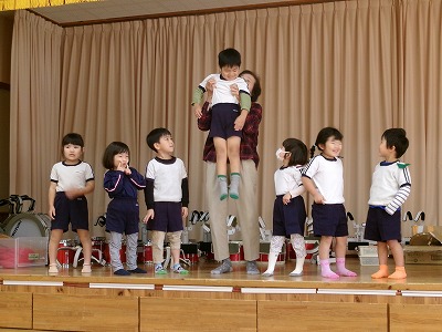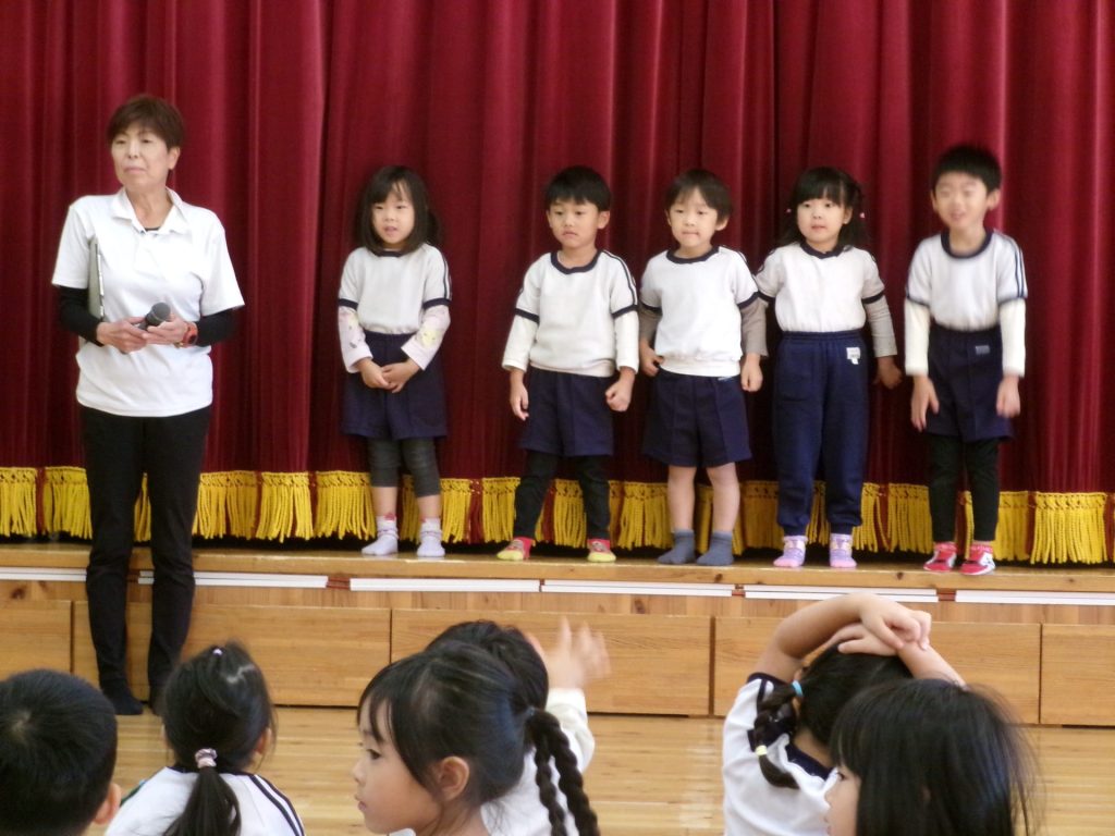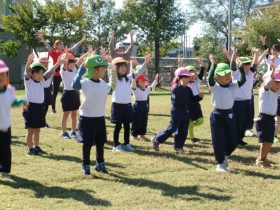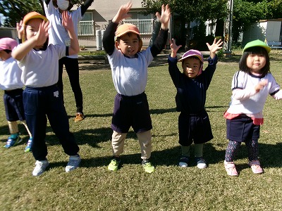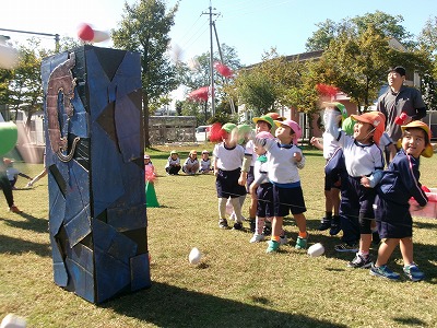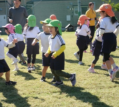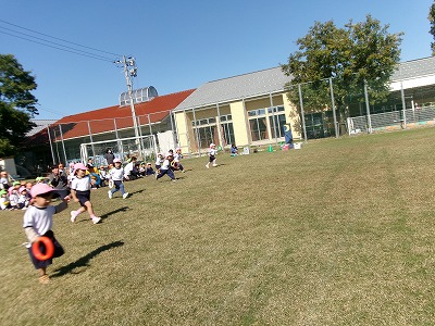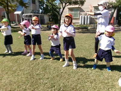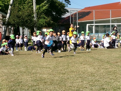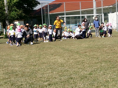 10月30日、秋晴れの中、10月生まれのお友達の誕生会とミニ運動会がありました。