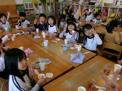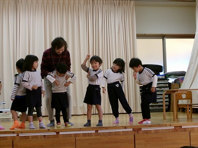 はじめは、質問コーナー。「おおきくなったらどんなお仕事をしたいですか?」の質問に「お医者さん」「消防士」「警察官」「歯医者さん」「ピザ屋さん」・・・と夢いっぱいの子どもたちでした。