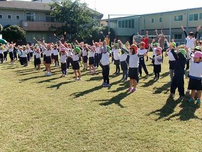 はじめは、体操「しゃかりきバンバン」・・・元気な声が響きます。