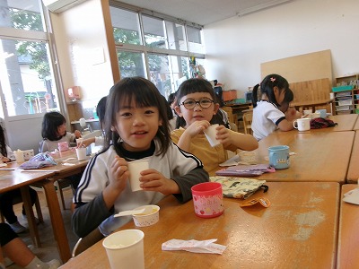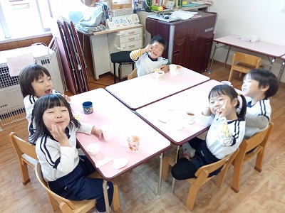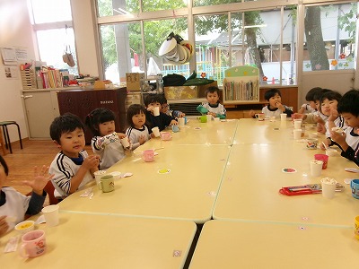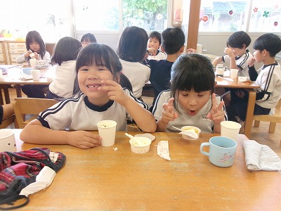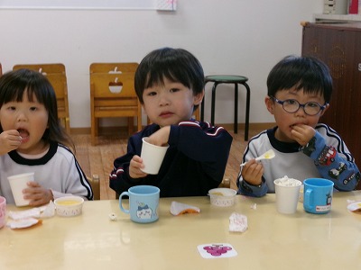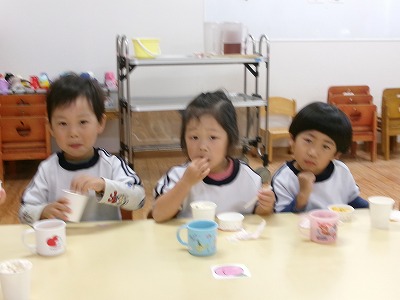 今日は、おやつのハロウィンデザートと一緒に食べ大満足!