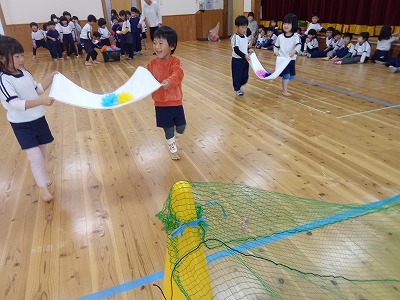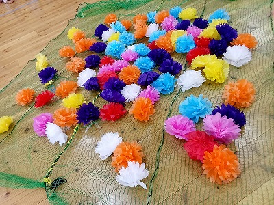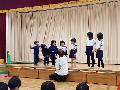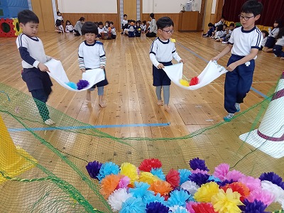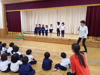 その後はお楽しみ会♪職員手作りの大型紙芝居「花さき山」