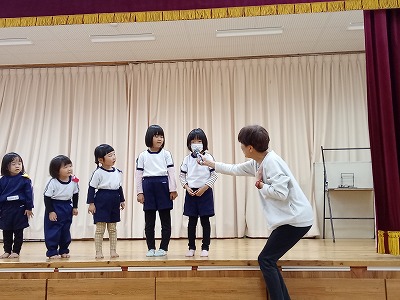 「どんなお菓子が好きですか?」「何色が好きですか?」お友達からの質問にも大きな声で答えてくれました。
