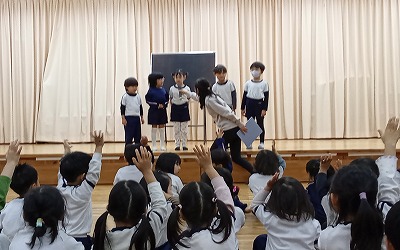 「お誕生日のお友だちに、質問がある人~!」「は~い!!」
