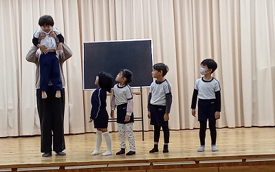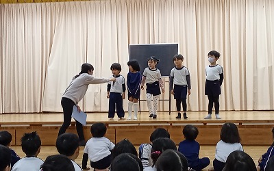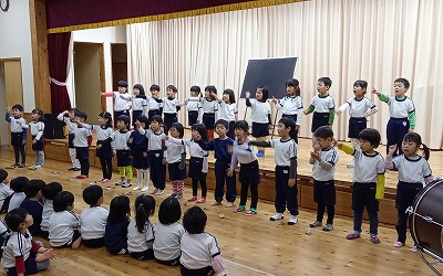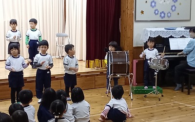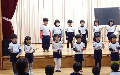 つき組さんは、「ウィンター・ワンダーランド」の合奏と、「ともだちになるために」の合唱です。