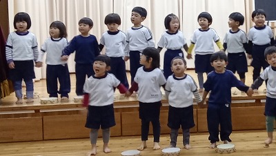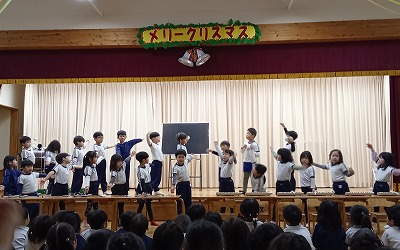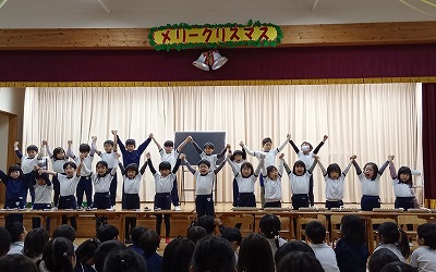にじ組さんは、「クリスマスのかねが」の合奏と「勇気100%」の合唱です!