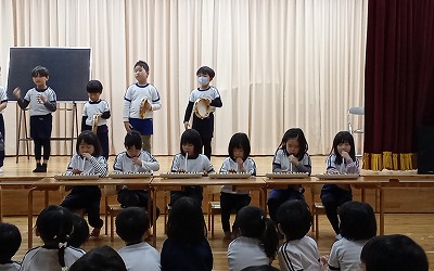 とっても綺麗にそろった合奏と、かわいい踊りつきの歌がとってもかっこよかったです!