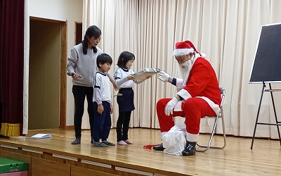 ほし組さんは「We wish you a merry christmas」の合奏と、「サンタが町にやってくる」の合唱です。