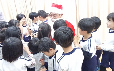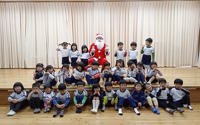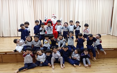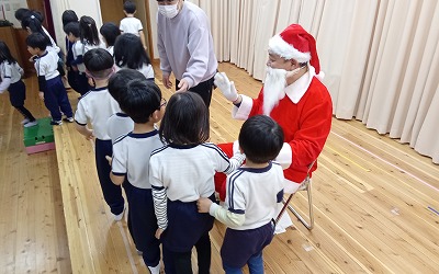 みんなの素敵な合奏と歌の音色を聞きつけて……、なんと、みどり園にサンタさんが来てくれました!!