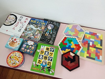 つき組さんには、絵本やパズル、カードゲームなどのプレゼント!