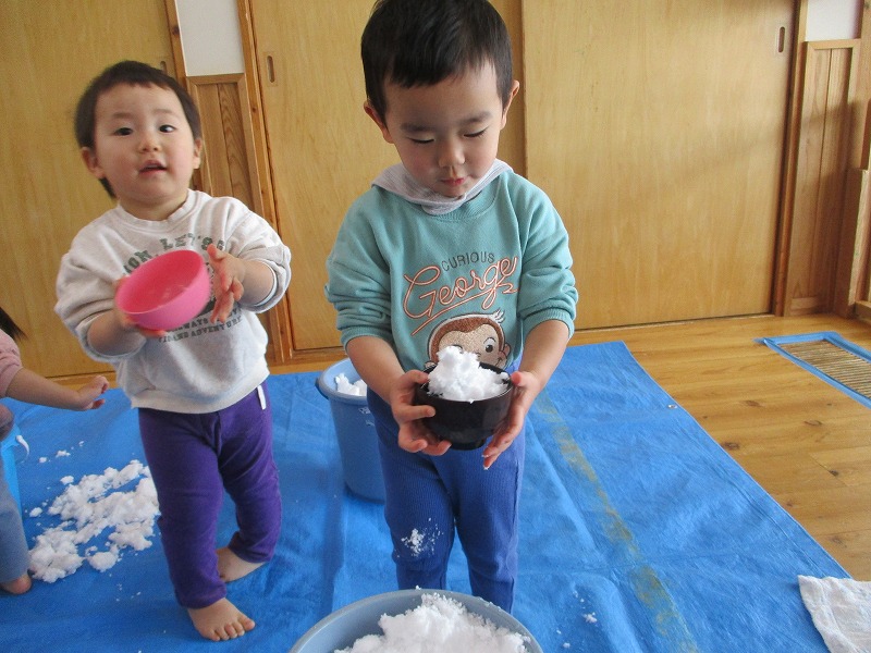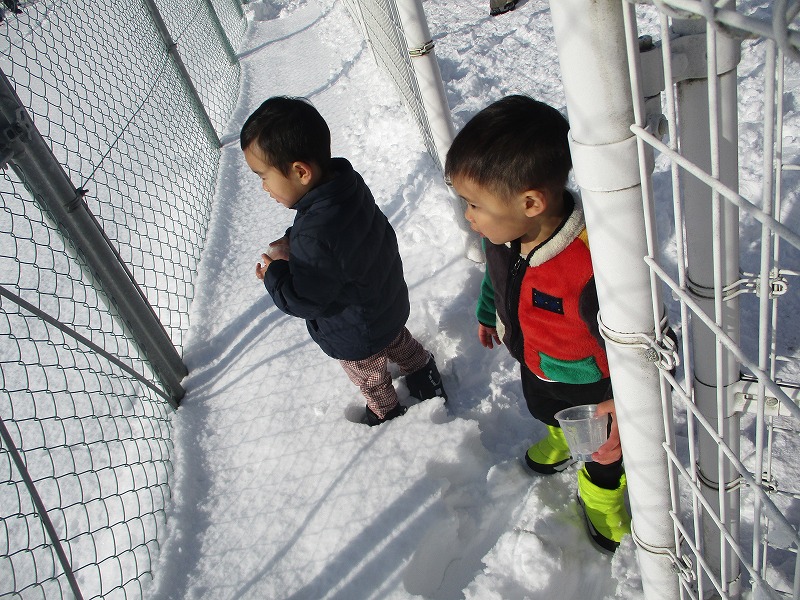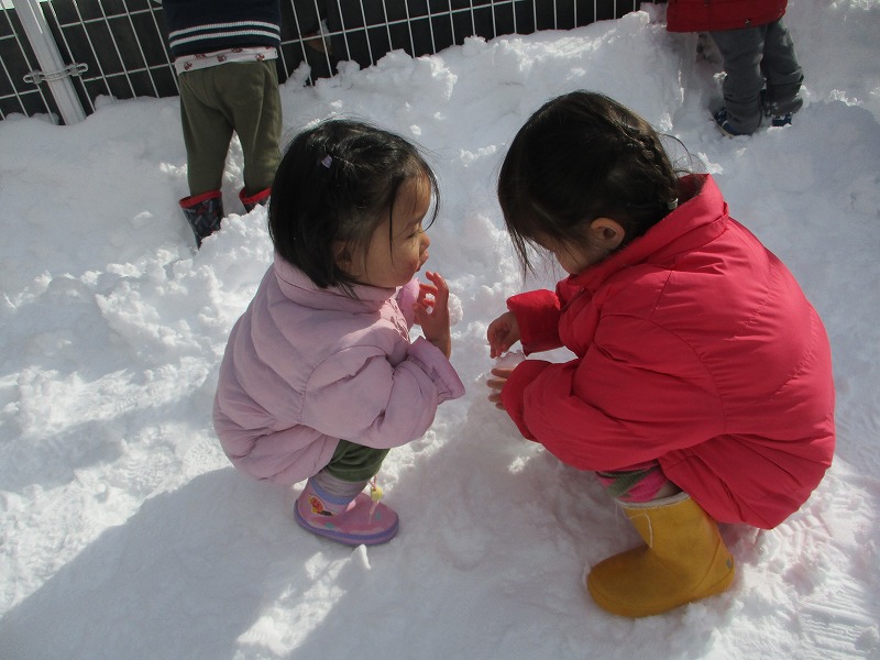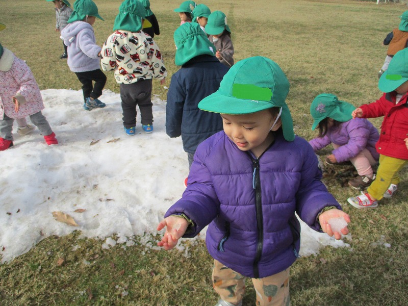 雪を削って手で持ってみたり友だちに分けてあげたりと楽しむことが出来ました。