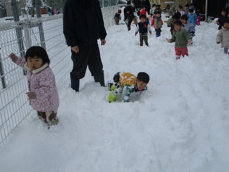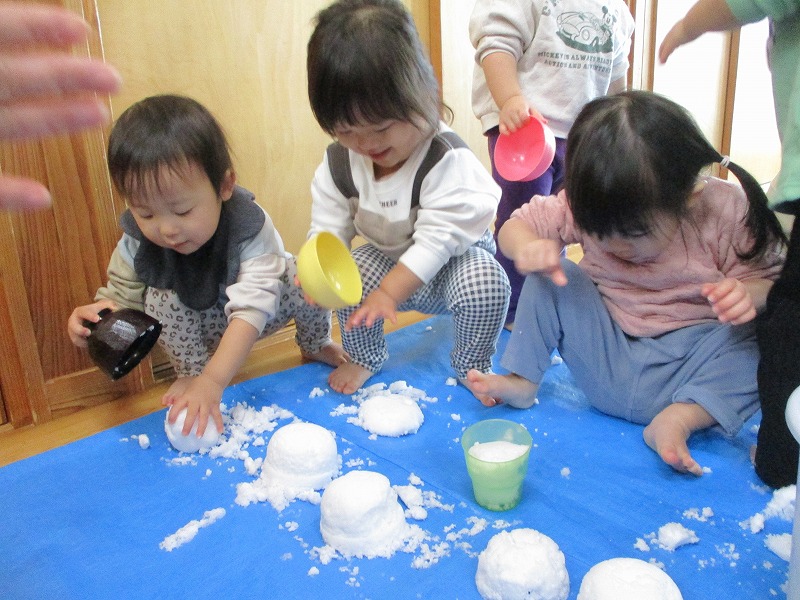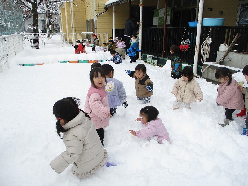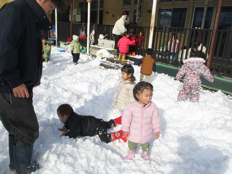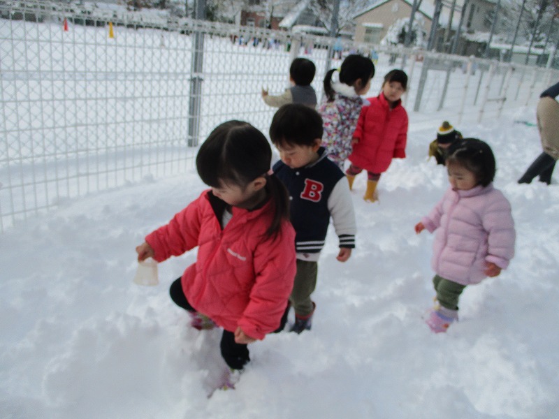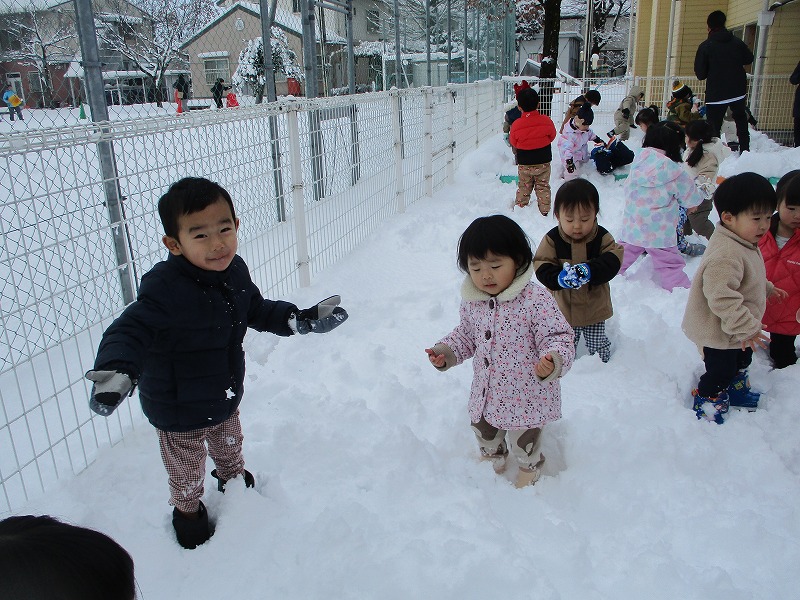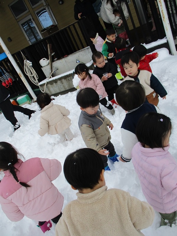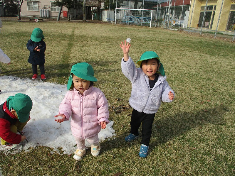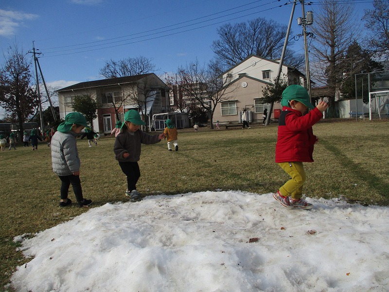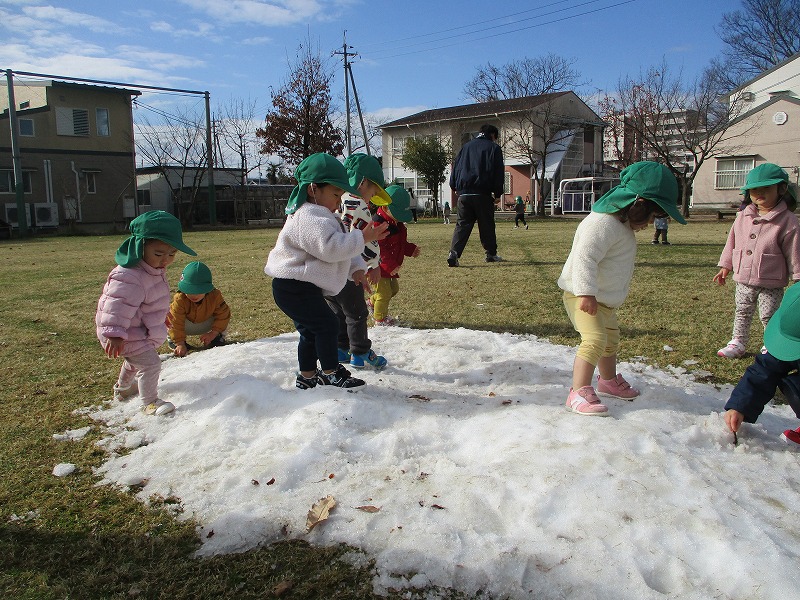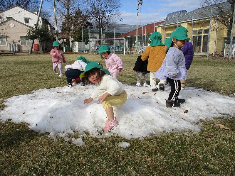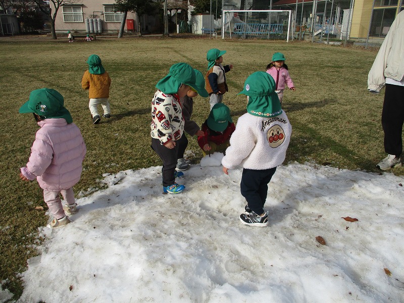 雪を触り「つめたーい」や楽しそうな笑い声も沢山聞こえました♪