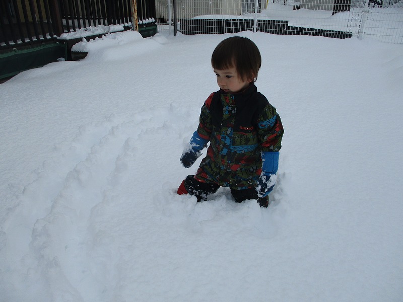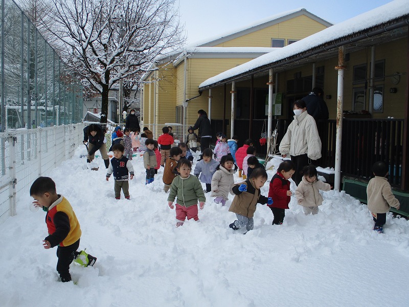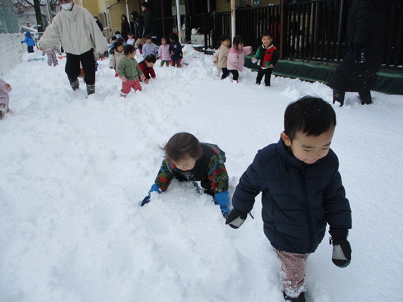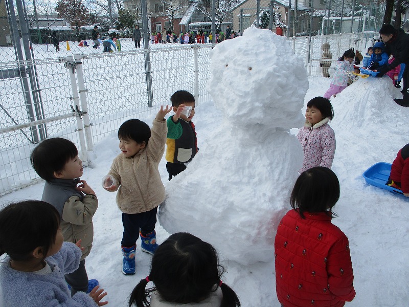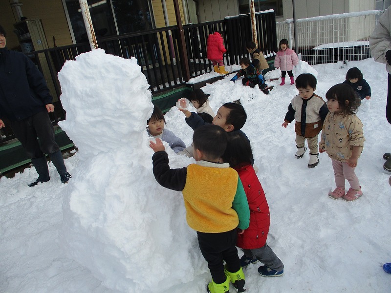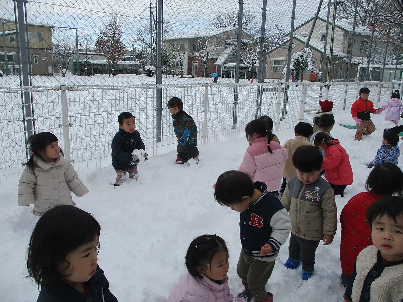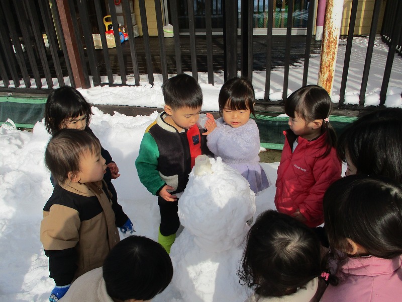 積もった雪の中を転びそうになりながら歩いたり、雪玉を作り投げたり、雪だるまを先生や友だちと作って楽しんだりしていました❄️☃️❄️