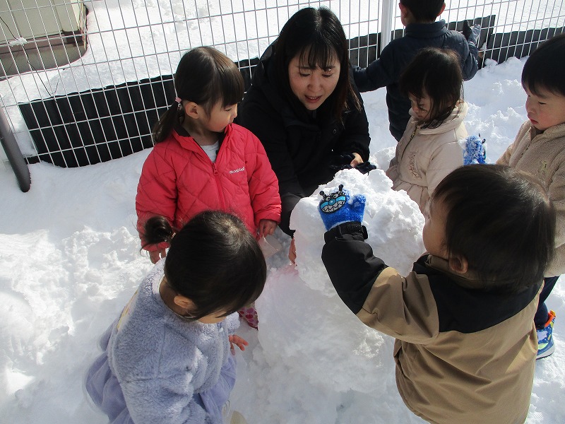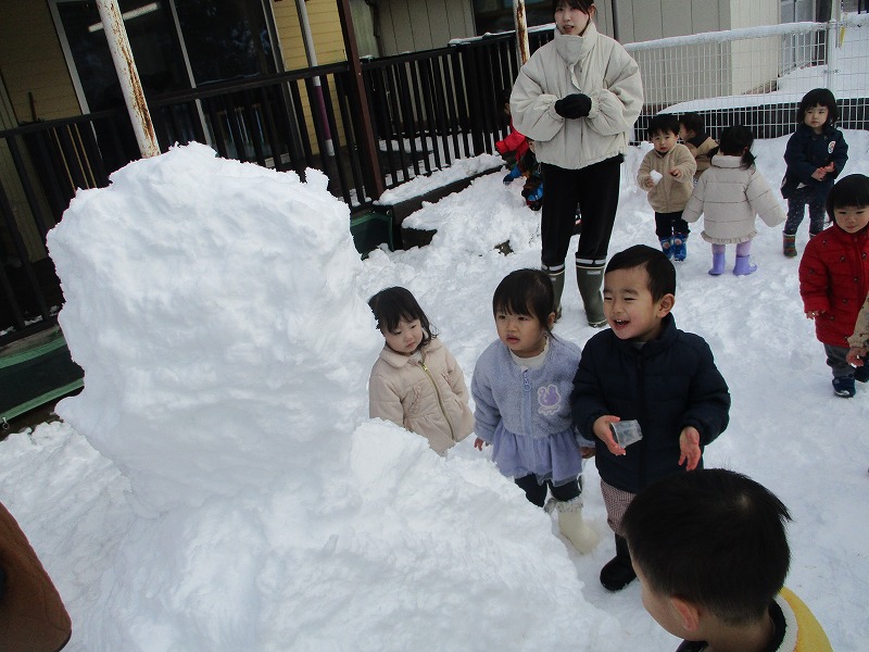 沢山積もった雪を使って子どもたちと楽しんで遊ぶことが出来ました!!