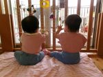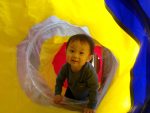 廊下に運動器具や手作り玩具を設置して、ずりばいやハイハイ、つかまり立ちをして遊んでいます。ハイハイではしごの上を超えるこ…続きを読む