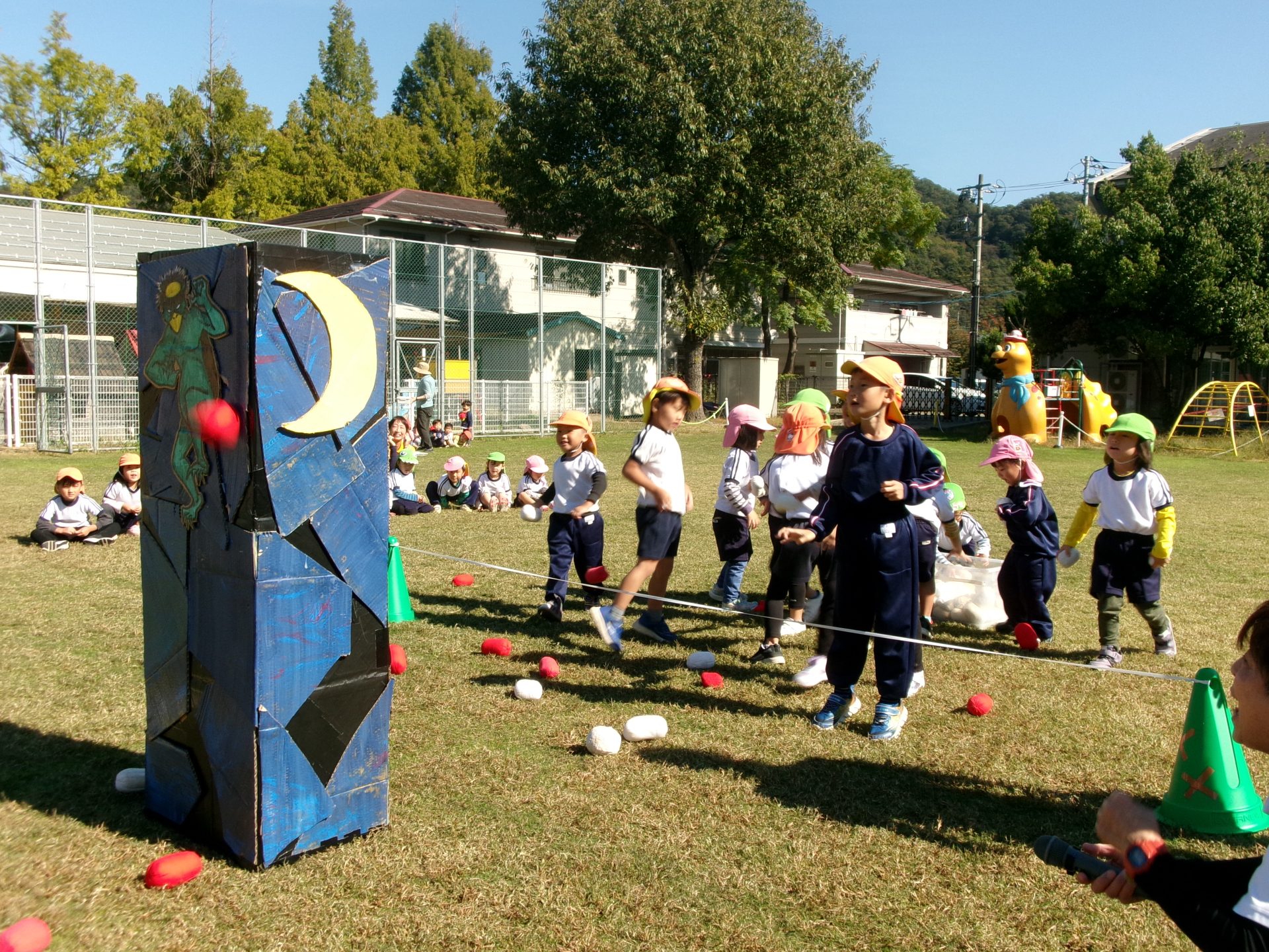 10月30日、秋晴れの中、10月生まれのお友達の誕生会とミニ運動会がありました。 はじめは、質問コーナー。「おおきくなっ